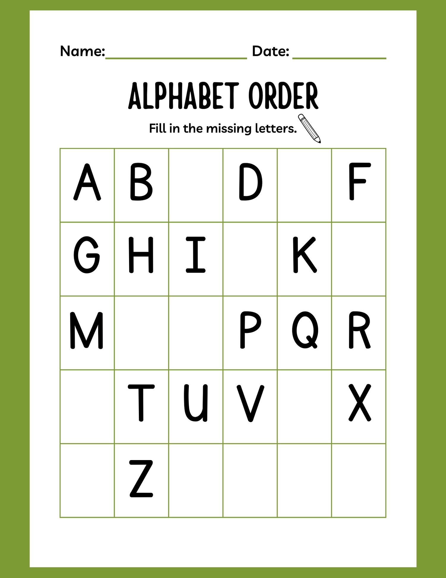 ✅ Letters & Phonics – Recognizing and tracing letters A-Z