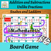 Addition and Subtraction Fractions with different denominators Snakes and Ladders Board Game