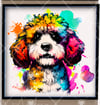 Small breed dog, graffiti art, paint splash art. Cockapoo/Cavapoo, Yorkshire Terrier, Shih Tzu, French Bulldog, Lurcher, West Highland Terrier, Maltese.