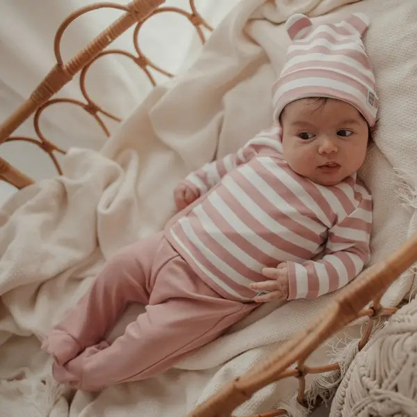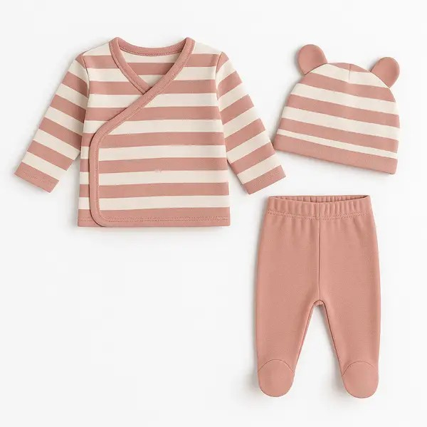 ⭐ Ensemble 3 Pièces Rayures – Première Tenue Rose Poudré