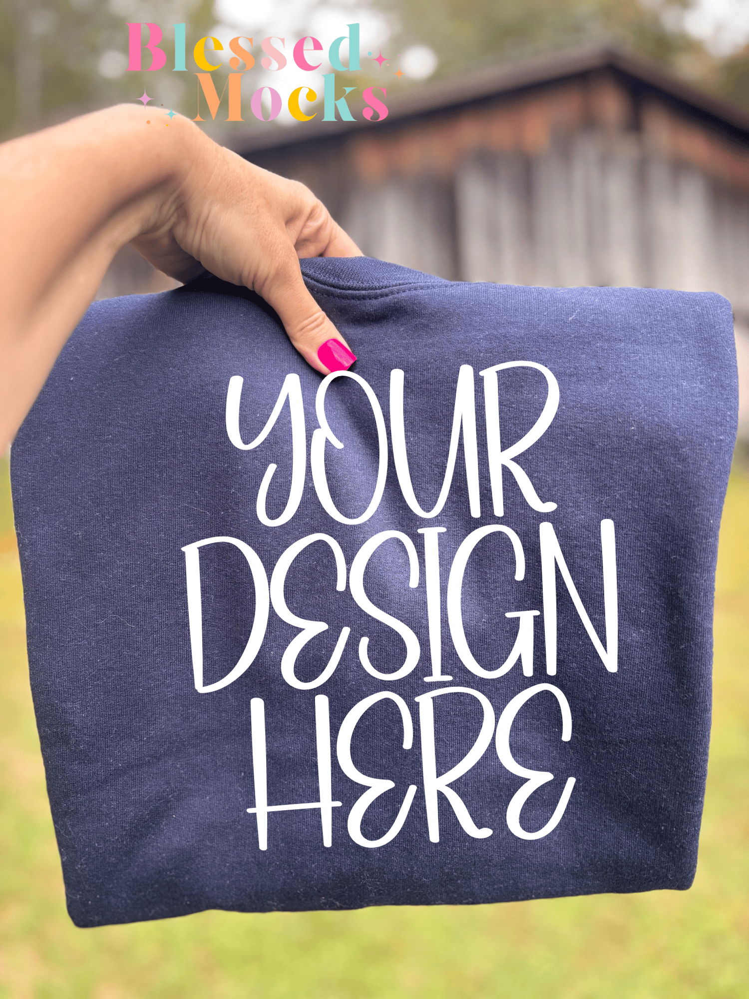 Gildan Navy Sweatshirt rustic barn Mock Up- IRL