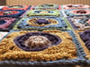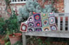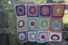 A versatile design which can be made in a single colour or multiple colours. The sample uses 4 colours in each square. Each sample colour is used once in each segment (i.e. each colour is used to work each round of the design once, but across 4 different squares).