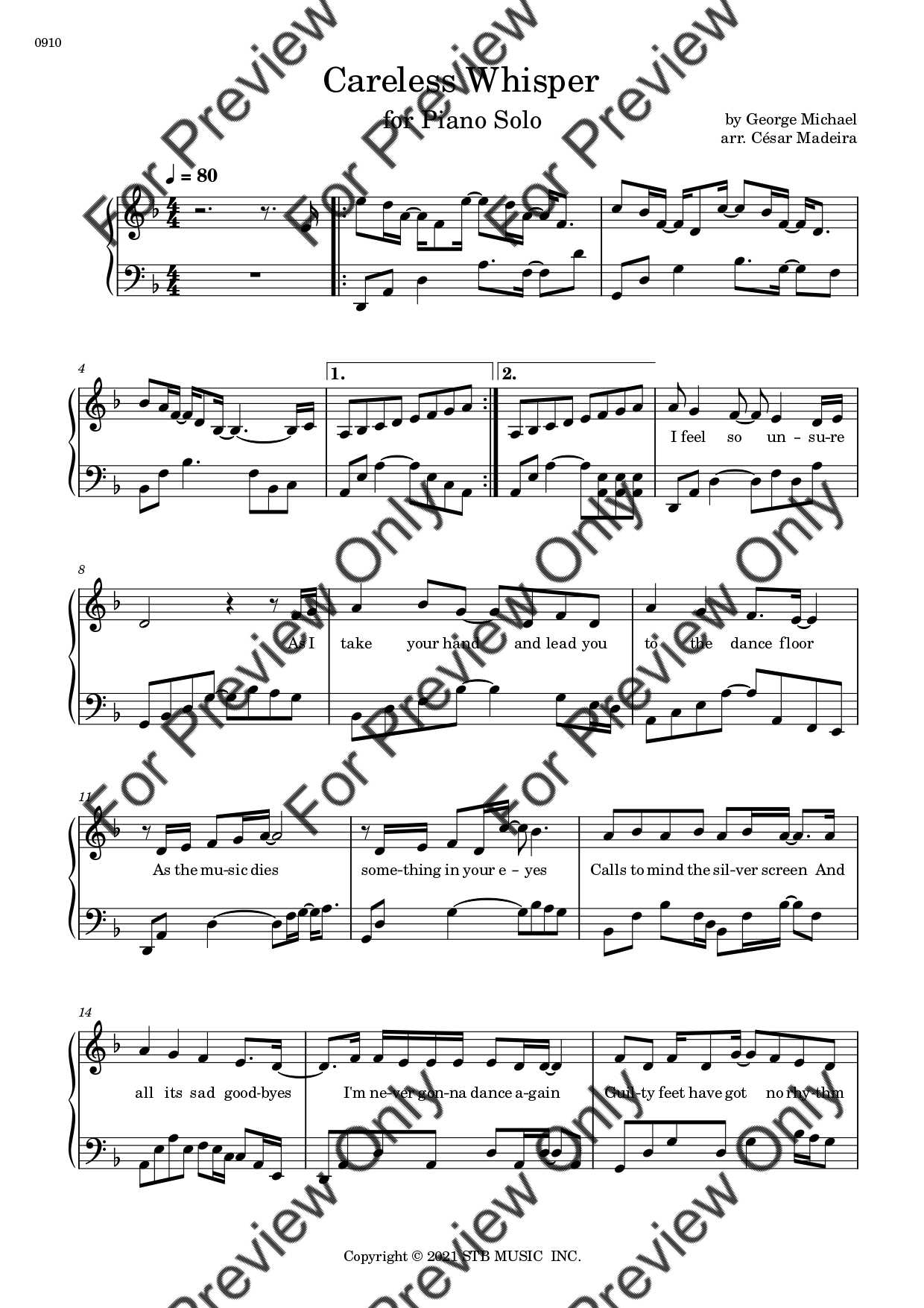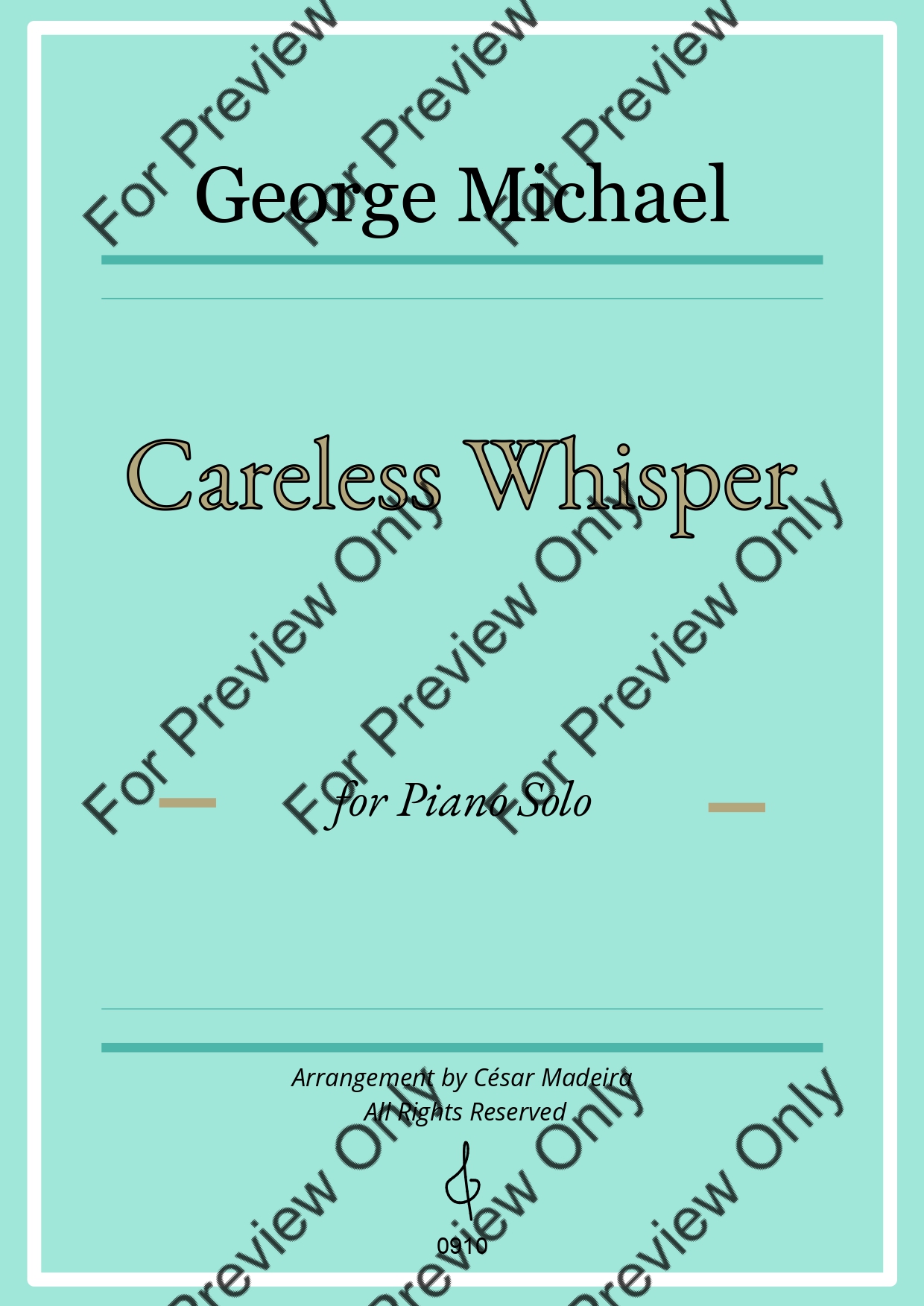 Careless Whisper by George Michael. Arrangement for Piano Solo. With Full Score. Have fun!
