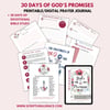 Here is a free printable with 30 Days Of God's Promises. It has journal pages and a list of the 30 scriptures. The journal pages have prompts to help you meditate on the scripture and how to pray using the A.C.T.S model of prayer.