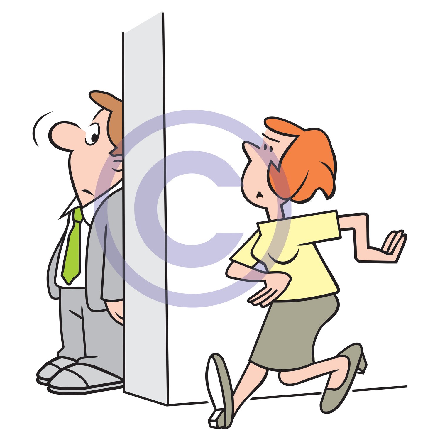 Man Fearfully Hiding behind wall as woman walks by