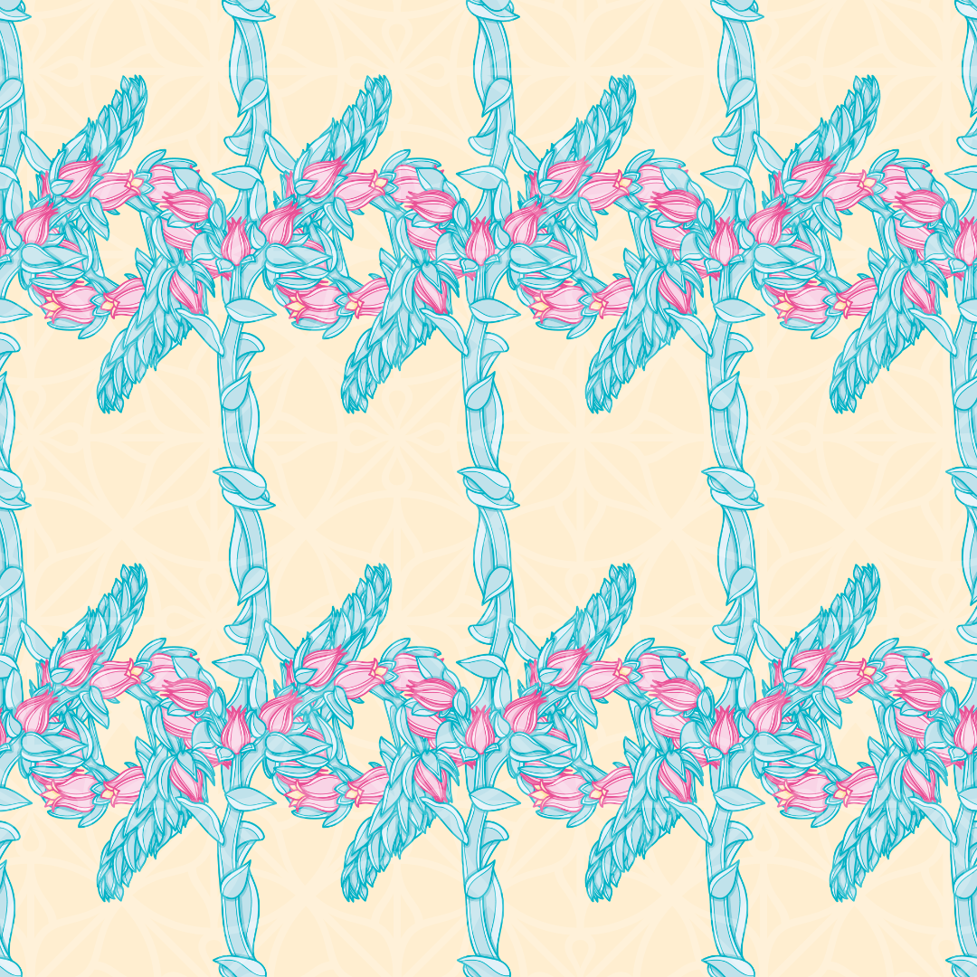 Succulent Flower Grid Vector Repeating Pattern