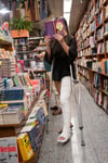 The video begins with a close-up of Flora's beautiful toes, still dirty from the plaster that immobilizes her entire leg. The writer opens her personal diary and starts writing a new chapter of her adventures with her beautiful fully plastered leg: "The bookstore..."