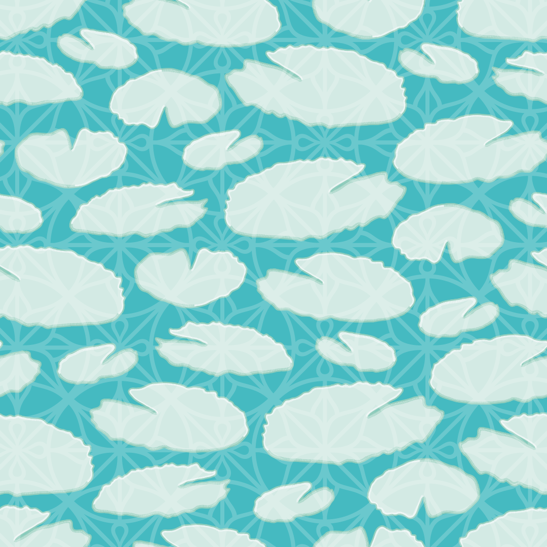 Water lily pads vector repeat pattern. Aquatic plant seamless vector illustration background.