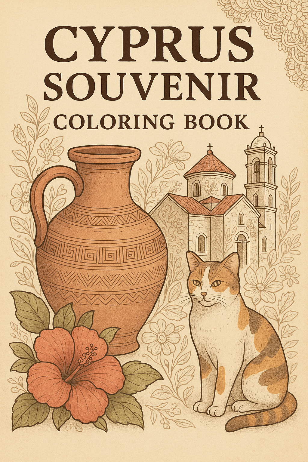 Cyprus souvenir, 50 designs, coloring ebook, digital printable product, instantly download