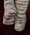The String of Bobbles Socks are knitted from the cuff down to the toe. Cast on for the cuff, using one of my favourites, the Estonian Cast-on method. Work the leg of the socks, then the French heel, turn the heel using some short rows and start decreasing to create the gussets. Continue in Tiny bobbles and Stocking stitch patterns at the foot and finish the socks with the Short, Medium or Long Standard Toe.