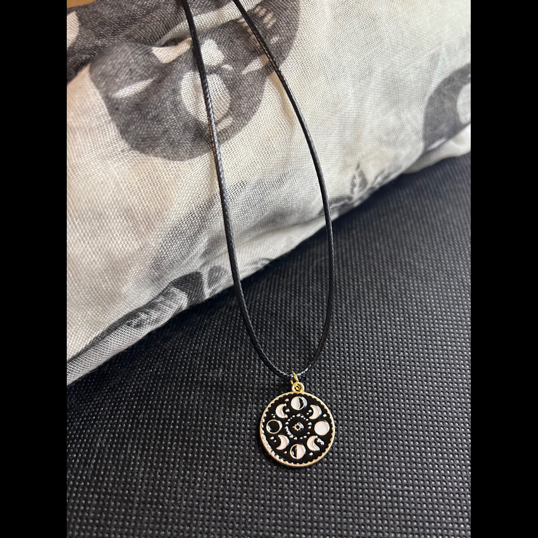 Our moon phase necklace is a sleek and stylish accessory that features the 8 phases of the moon in a bold black finish. It can be worn as a statement piece to show off your personality, or as a subtle nod to your zodiac sign. The the white and black add a trendy touch to any outfit and makes it a versatile accessory to have in your jewelry collection.