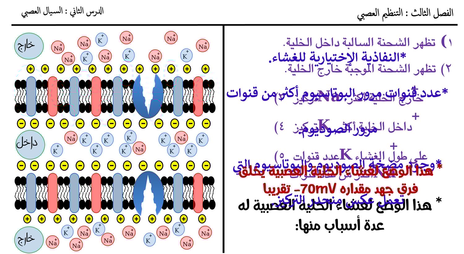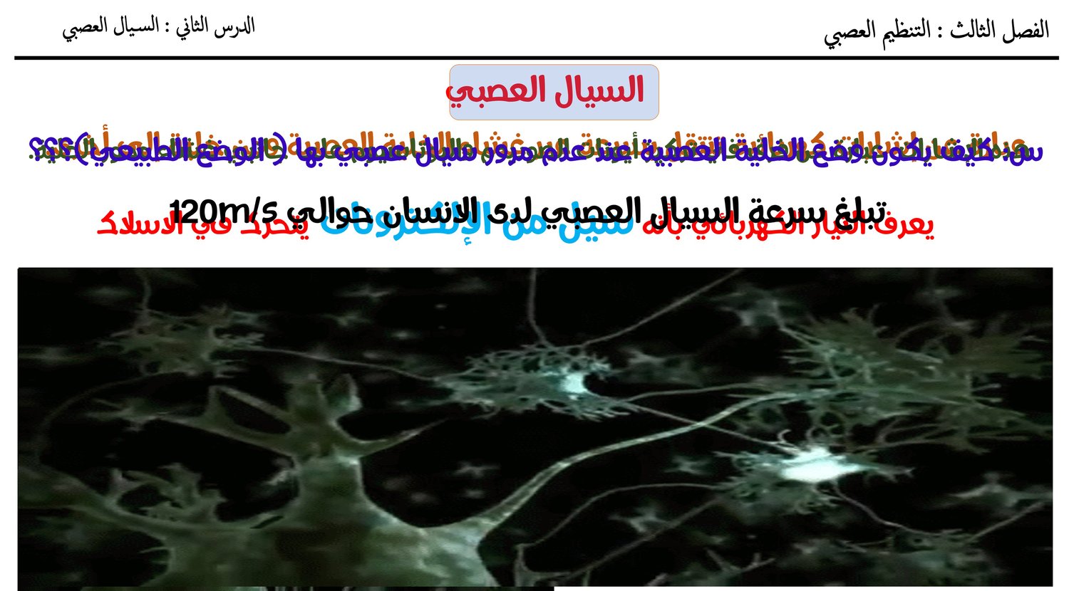 العرض يحتوي على شرح لكيفية تكون السيال العصبي في الخلية العصبية للصف الثاني عشر