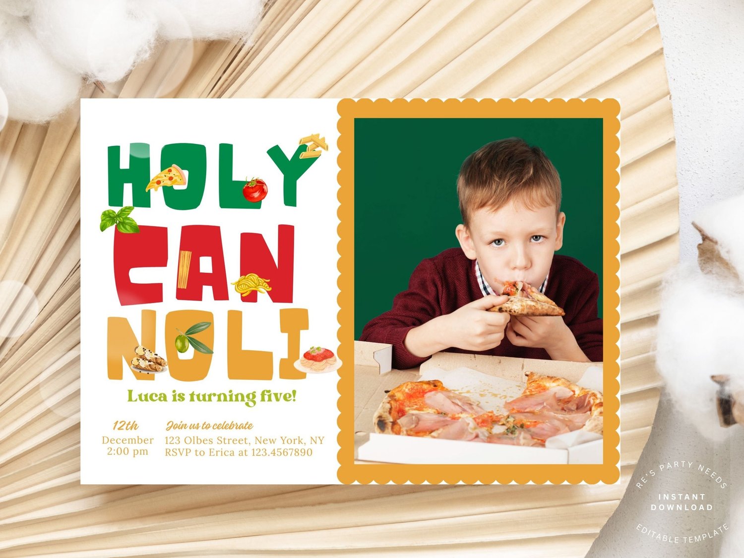 Editable Holy Cannoli Birthday Invitation with Photo, Hand Drawn Italian Themed Party, Italian Party Invite, Ciao Baby Template