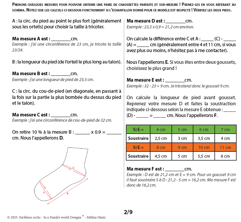 Il est très important de respecter ces deux échantillons si vous voulez obtenir la bonne taille.