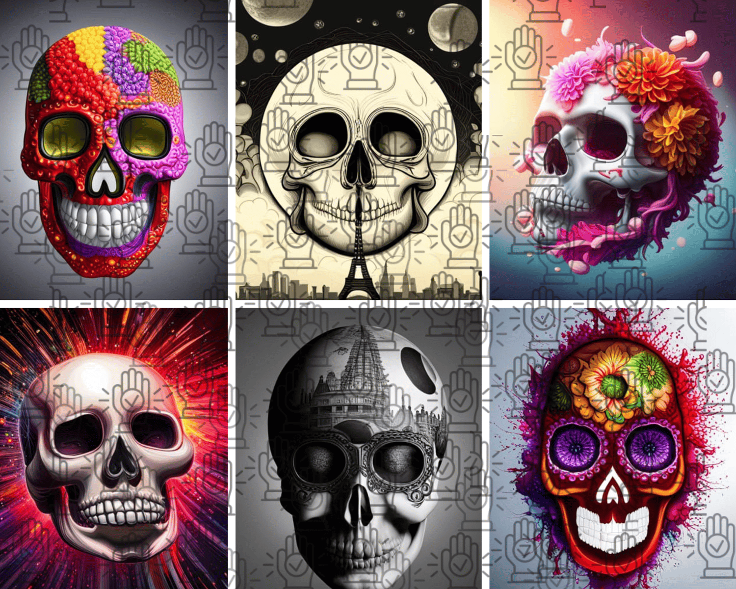 You'll receive the 6 different prints that are showcased above, each one uniquely vibrant and stunning. The available sizes are 12x12, 12x16, 16x16, 16x20, 18x24 and 24x36. All of the prints are ready to be printed onto your favorite product or canvas. These six candy skull prints are premium, handmade, and with the bright colors and intricate details, these prints are perfect for anyone who loves the sugar skull tradition. They would be great for Halloween décor, a Day of the Dead celebration, or any other spooky event!