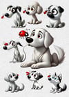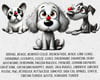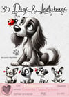 Whimsical dogs with ladybug, 34 dog breeds + pawprint, 35 PNGs