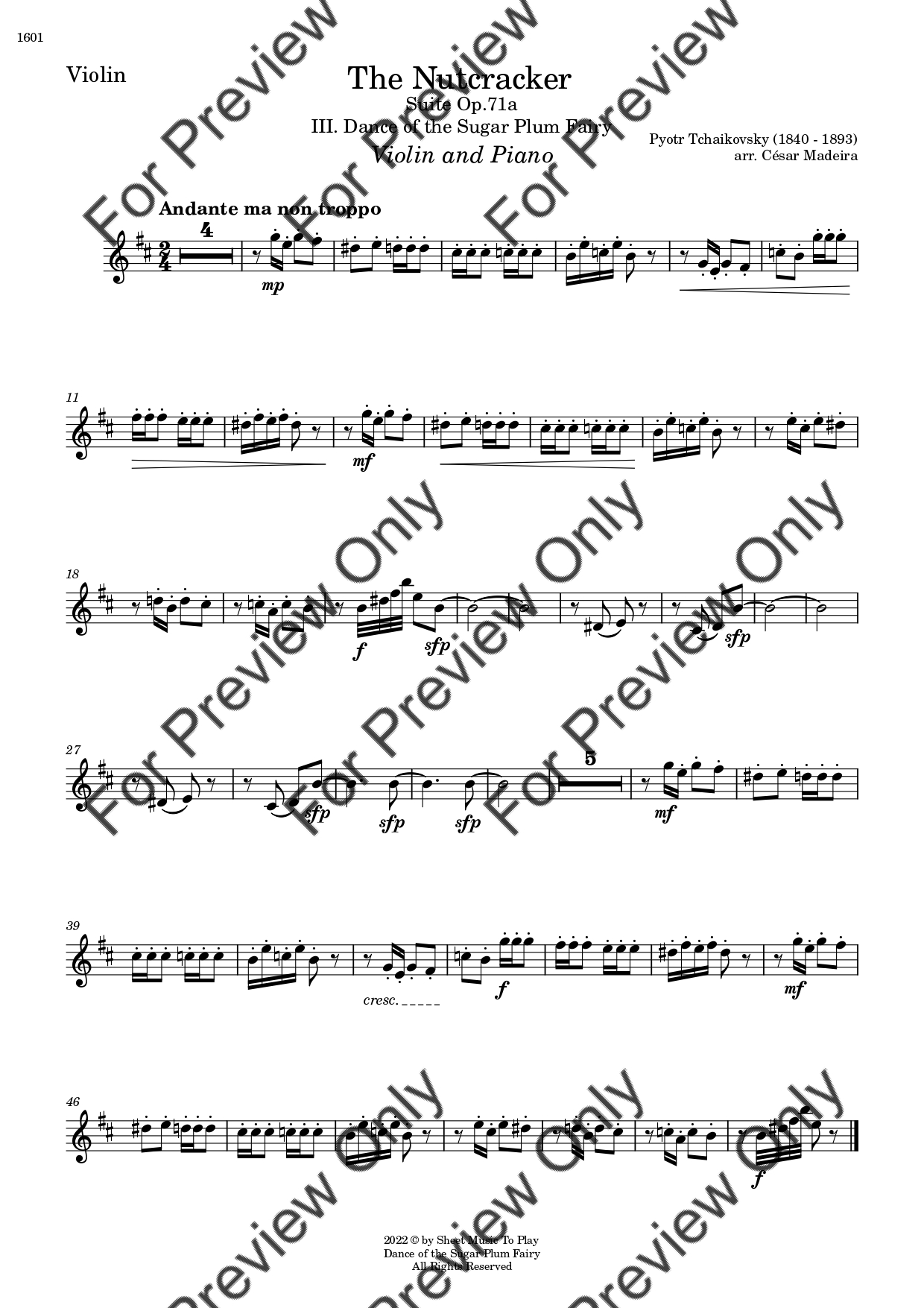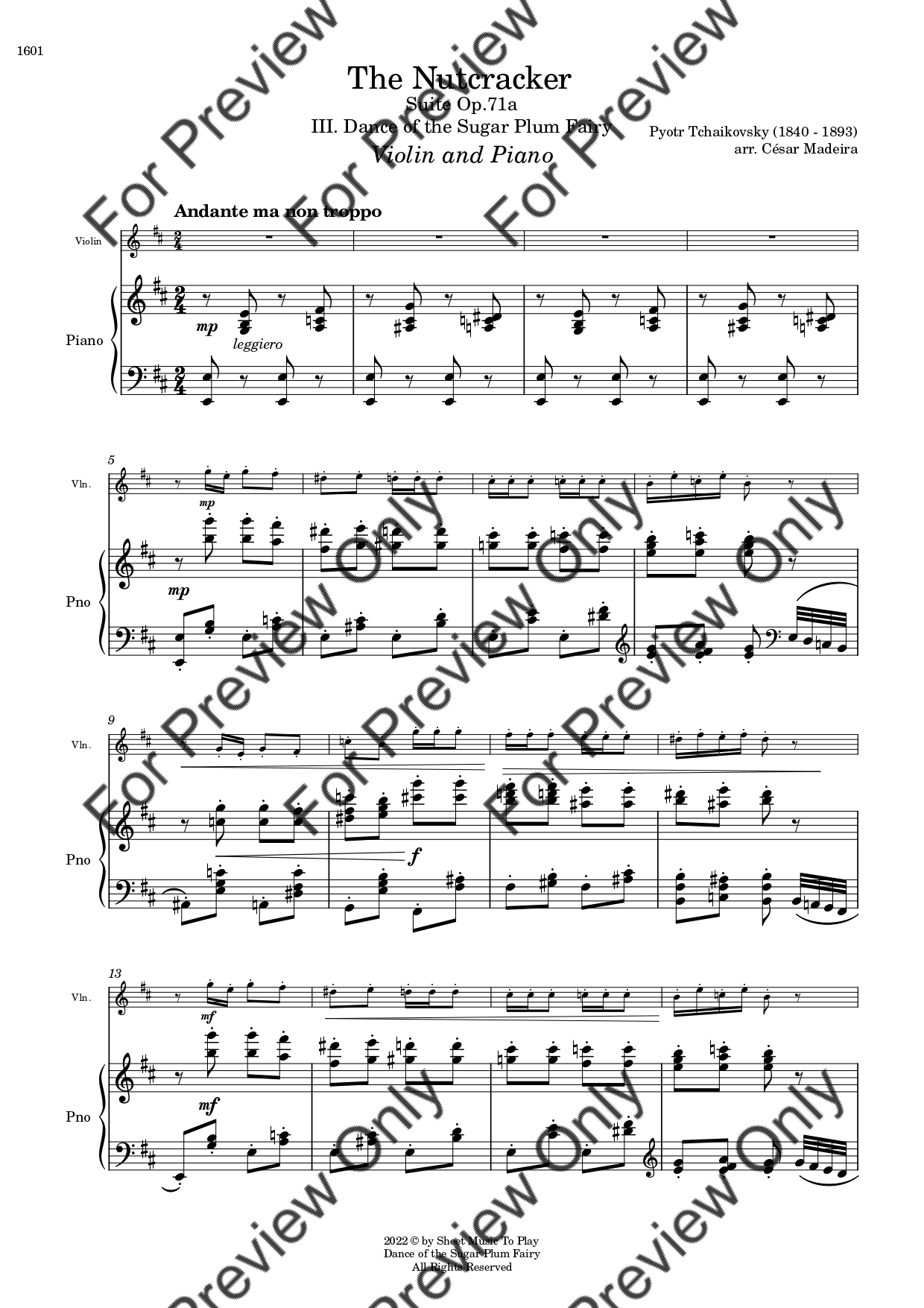 Dance of the Sugar Plum Fairy (from The Nutcracker) by Pyotr Tchaikovsky. Arrangement for Violin and Piano. With Full Score and Individual Parts. Have fun!
