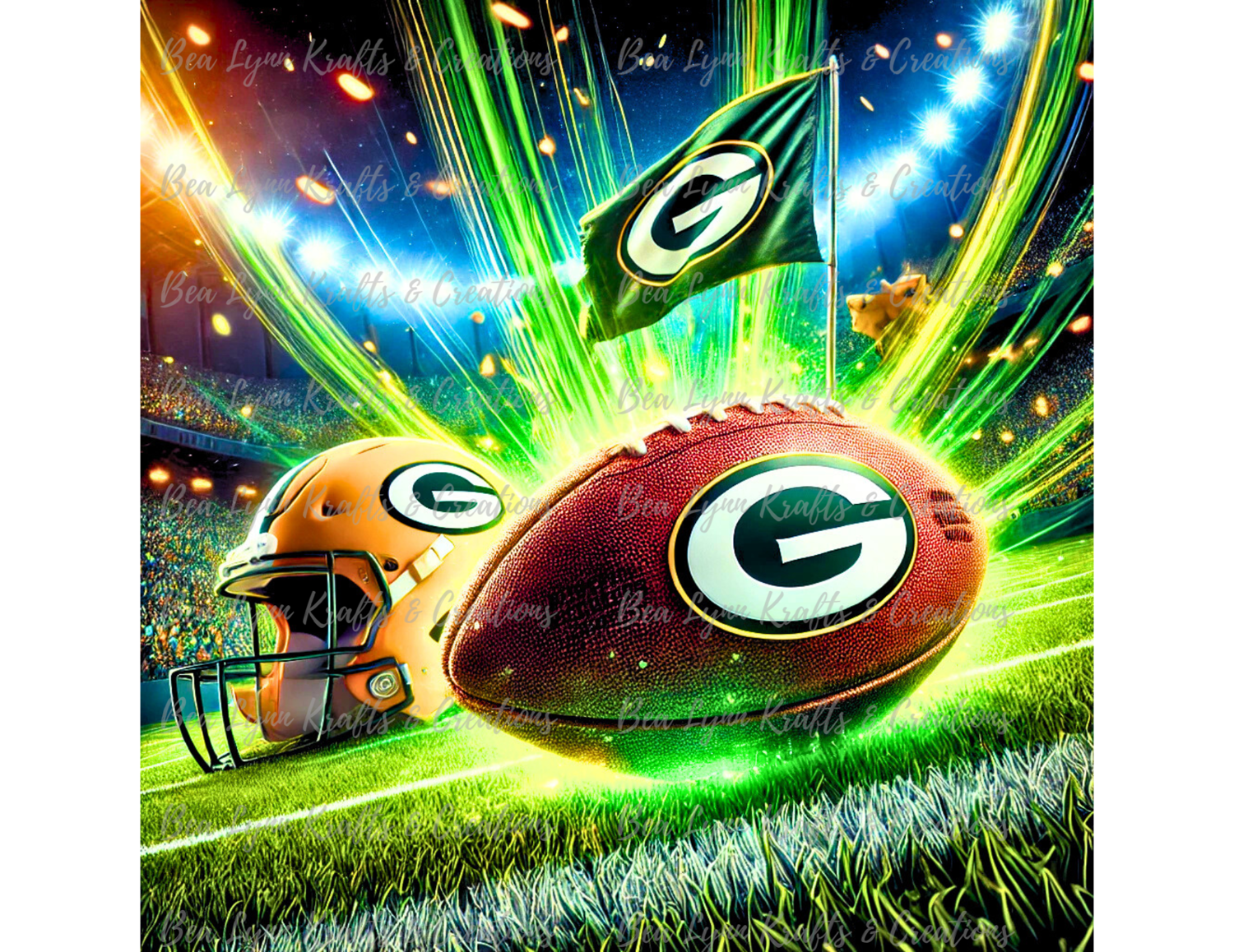 Get ready to elevate your game day vibes with this high-energy, action-packed Green Bay Packers digital PNG image! Featuring a bold Packers football, glowing with green and gold streaks of energy under stadium lights, alongside the iconic helmet and Cheesehead hat—this image screams Packers pride! Perfect for true fans looking to show off their team spirit in style. 💚💛