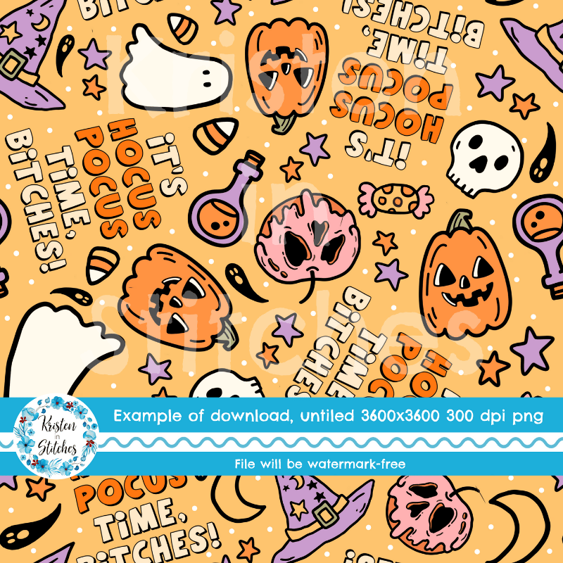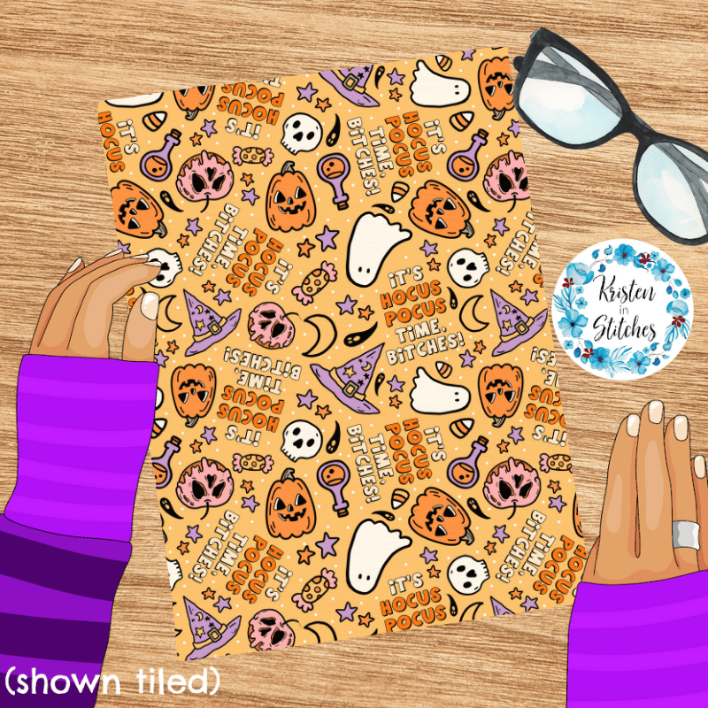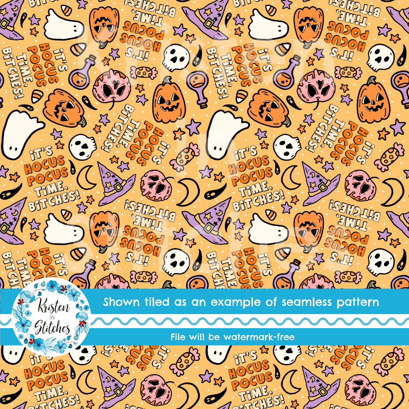 It's Hocus Pocus Time Bitches Sweary Sarcastic Halloween Witch Seamless Pattern