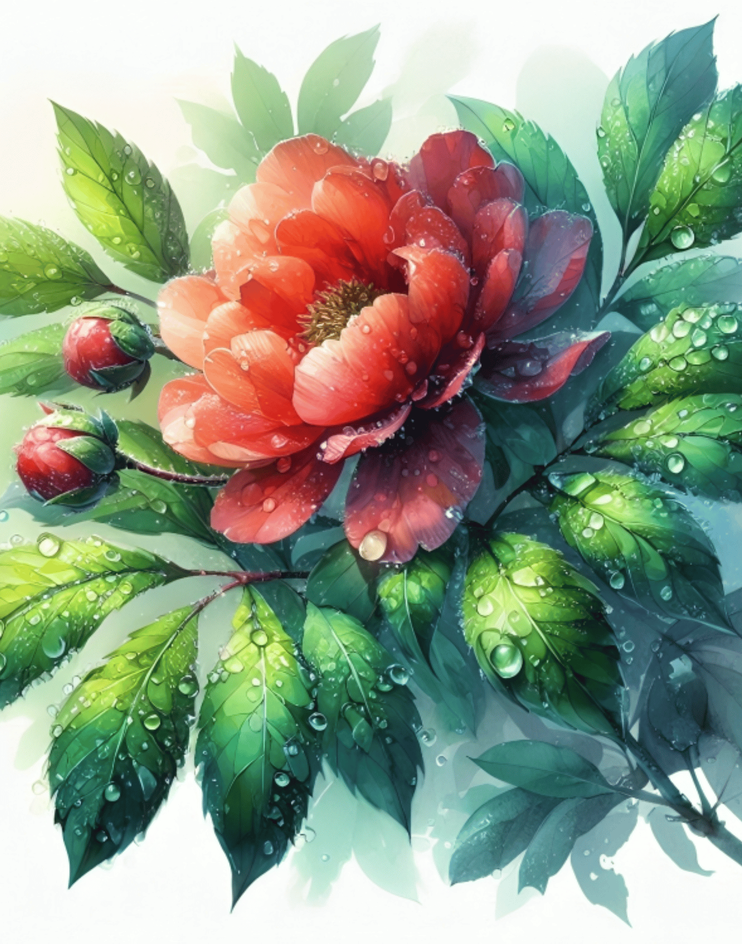 Wet Flower, Single Flower, Rainy Season Flower, Green Leaf Painting, Environmental Painting, Green Nature Painting, Green Painting, Wild Flower, Flower Beauty, Watercolor Floral Art, Wall Art, Digital Art, Best Flower. Rain Beauty, Monsoon Beauty, Wild Fl