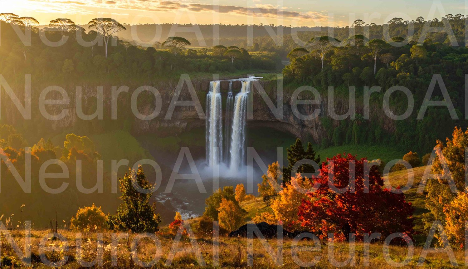Stunning waterfall cascades through lush landscape