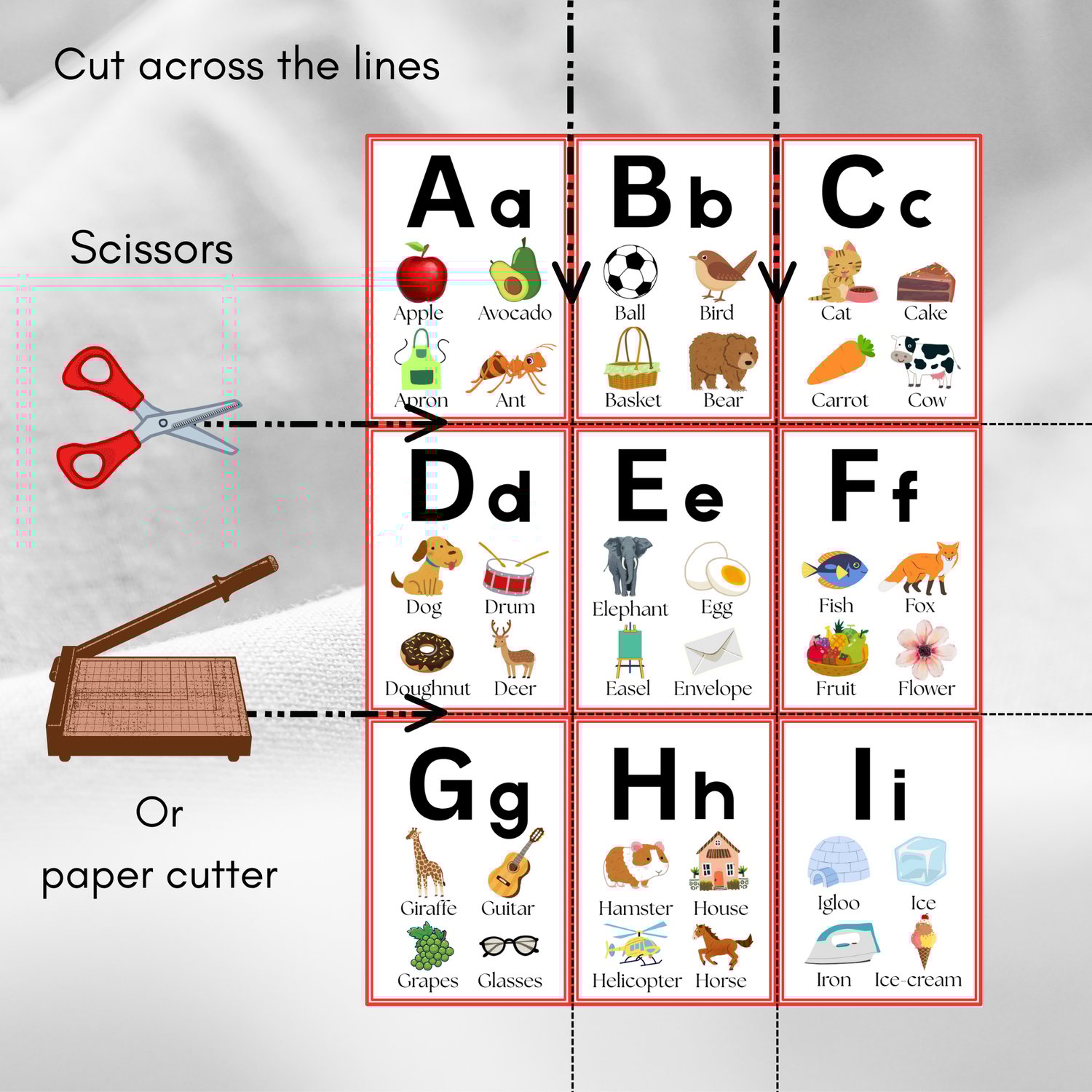 Prints on to A4 card/paper. Simply cut them out using scissors or a paper cutter.