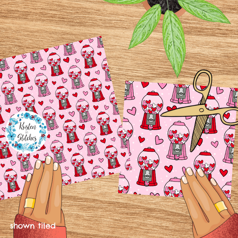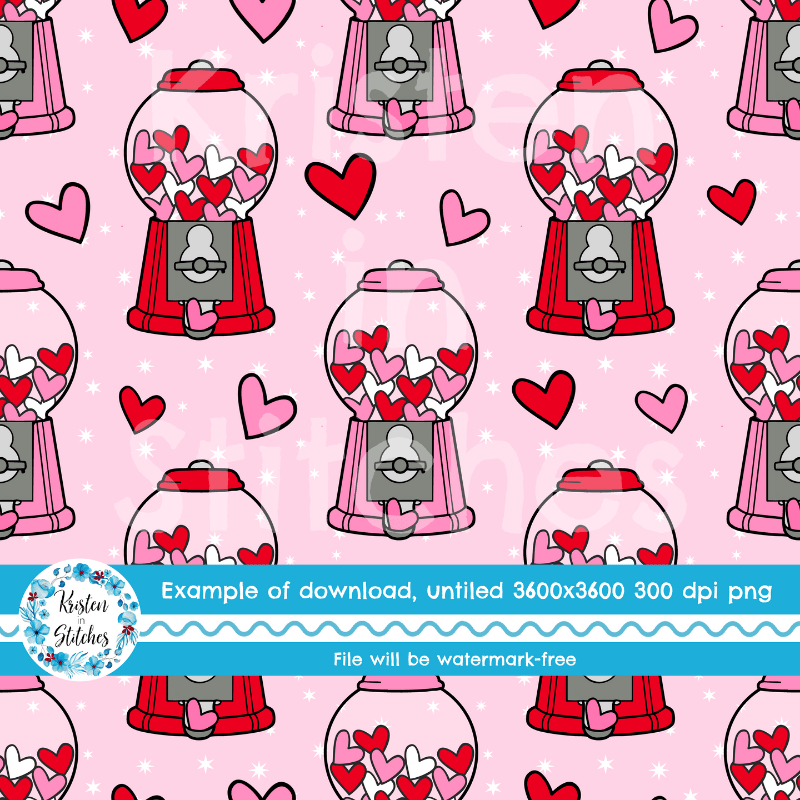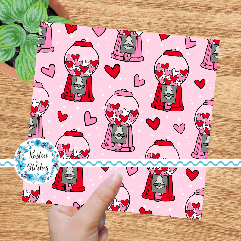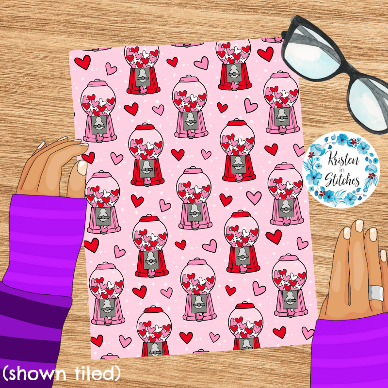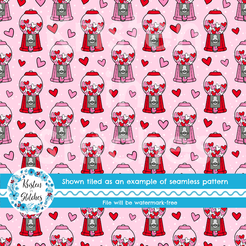 Valentine Hearts Bubblegum Machines Seamless Pattern