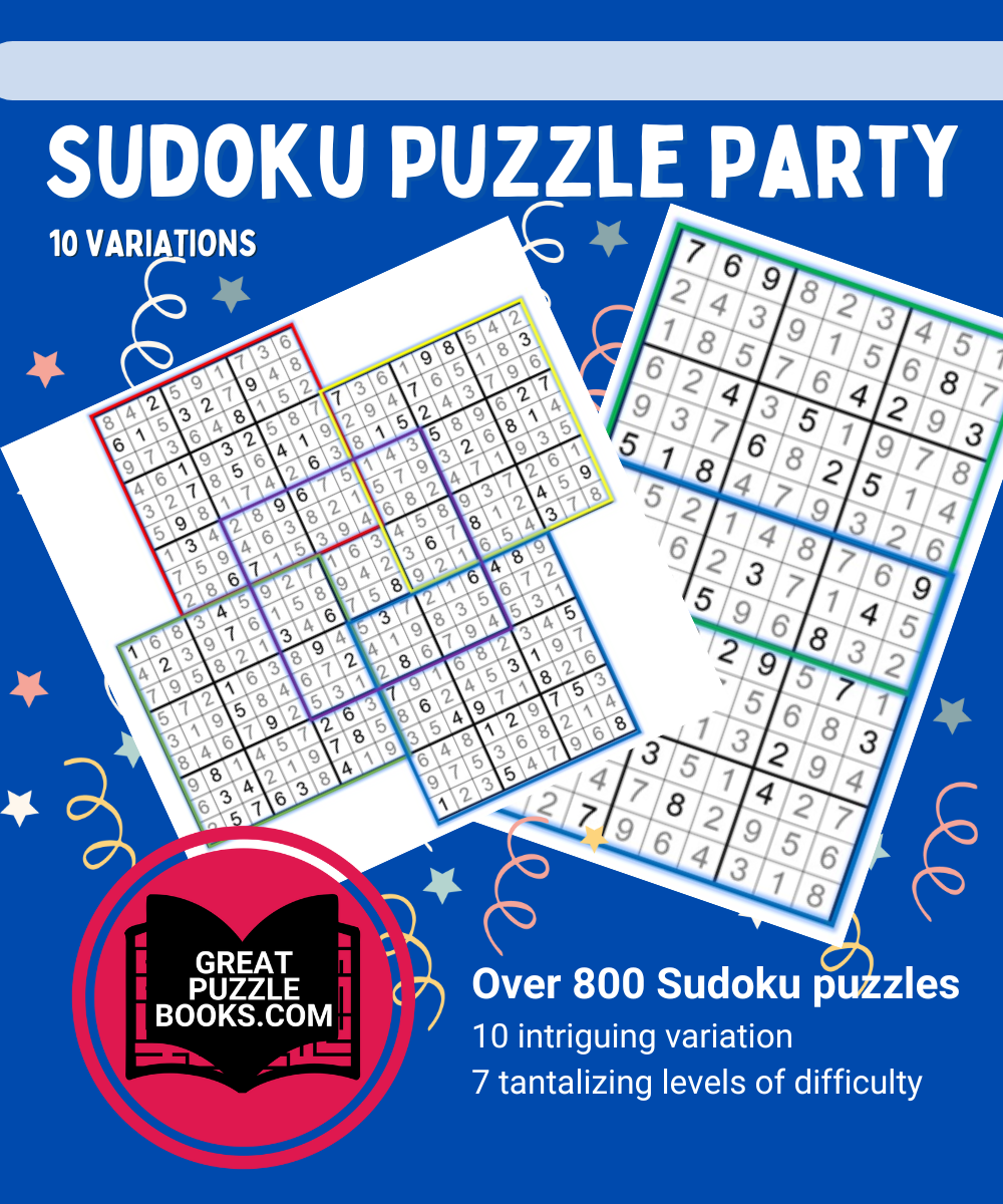 Step inside our Sudoku Puzzle Party, your gateway to over 800 meticulously curated Sudoku puzzles (818 to be precise). But this is no ordinary Sudoku collection. Spread throughout this volume, you'll discover 10 intriguing variations, and 7 tantalizing levels of difficulty. Every puzzle solved takes you one step closer to that euphoric 'Aha!' moment - a Sudoku Puzzle Party!!