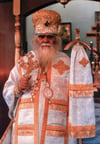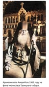 Открылись Царскiе врата. Передъ народомъ всталъ святитель. Его облаченiе дѣлало его частью Византiйской старины, его митра — по замыслу терновый вѣнецъ, больше похожа на нимбъ. Она вся какъ бы сiяла алмазами и драгоцѣнными камнями. Его облаченiе было тяжелое и твердое. Онъ сдѣлалъ широкое крестное знаменiе и закончилъ, положивъ руку на сердце. Онъ былъ высокъ, худощавъ, съ серебрянной бородой и стоялъ съ закрытыми глазами. Его движенiя вызывали вниманiе у слушателей. Когда онъ открылъ свои уста, полилась рѣчь удивительной красоты съ поэтическими образами, перемѣшанными со славянскими словами. Вотъ онъ-то могъ бы “глаголомъ жечь сердца людей”, но на сей разъ онъ былъ спокоенъ и въ его голосѣ звучалъ миръ, миръ, исходящiй изъ его внутренняго настроенiя.