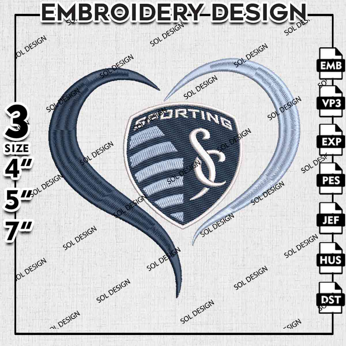 MLS Sporting Kansas City Heart Logo Embroidery Designs, Sporting Kansas City Embroidery Files, MLS Sporting Kansas City Logo Embroidery, Major League Soccer Machine Embroidery Design, Digital Download