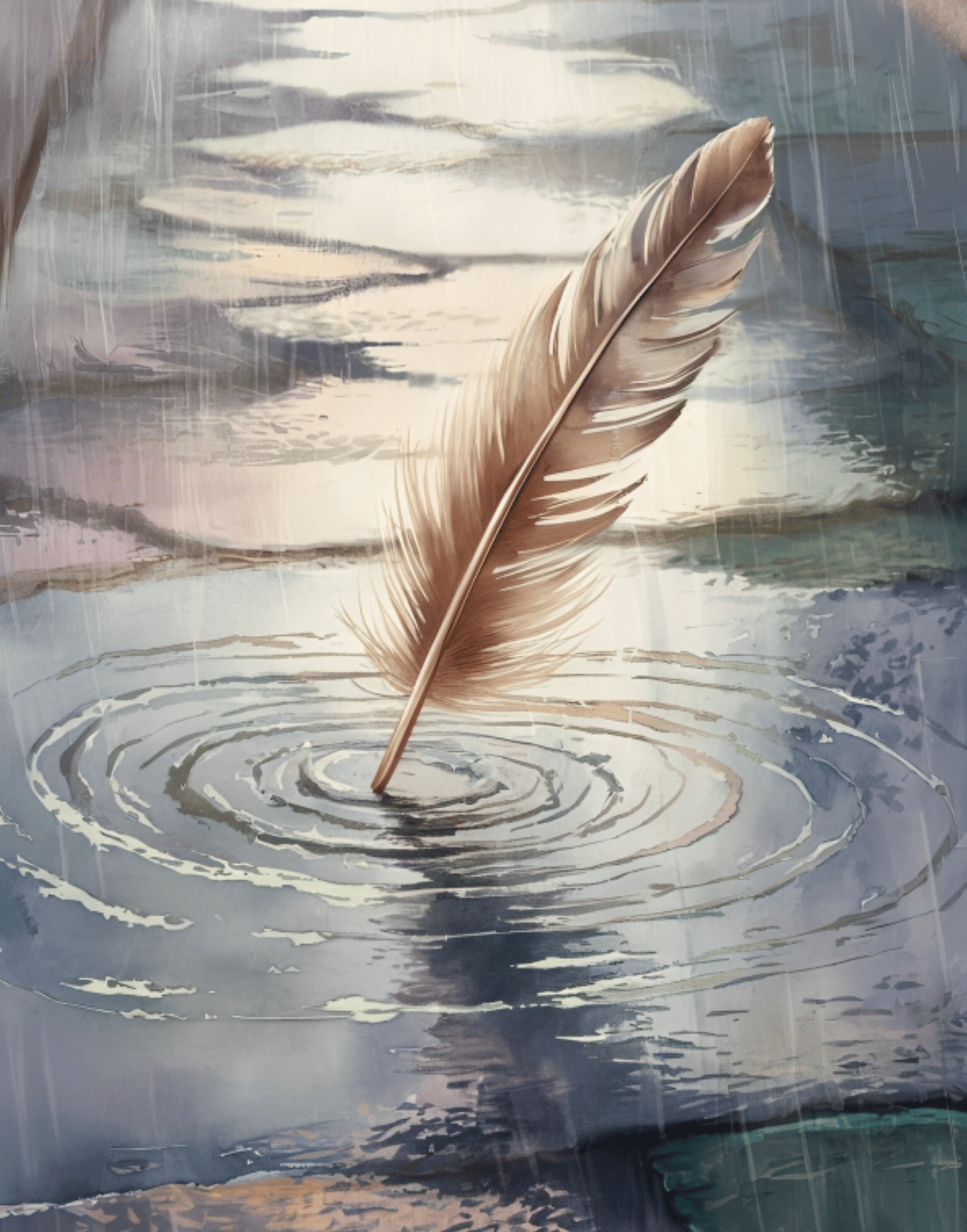 Monsoon Beauty, Rain Painting, Calm Mind Painting, Mindfulness, Serene Art, Relaxation Art Cool Street Art, Single Feather on Street Water Art, Feather Art, Serene Art, Street Art, Water Wave Painting, Feather Dropping Water Painting, Small Effort paintin