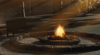- outside sitting area for food and an area with a fire place
