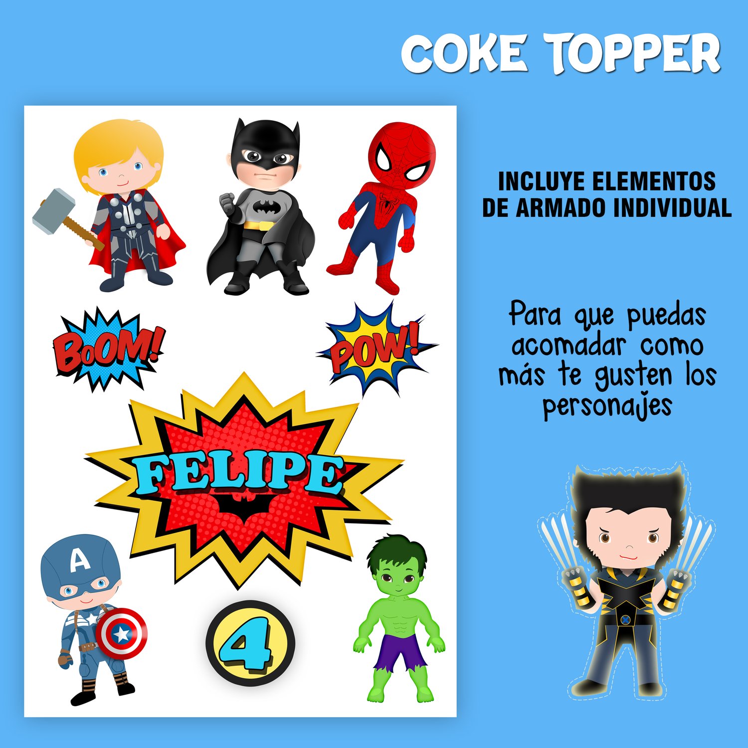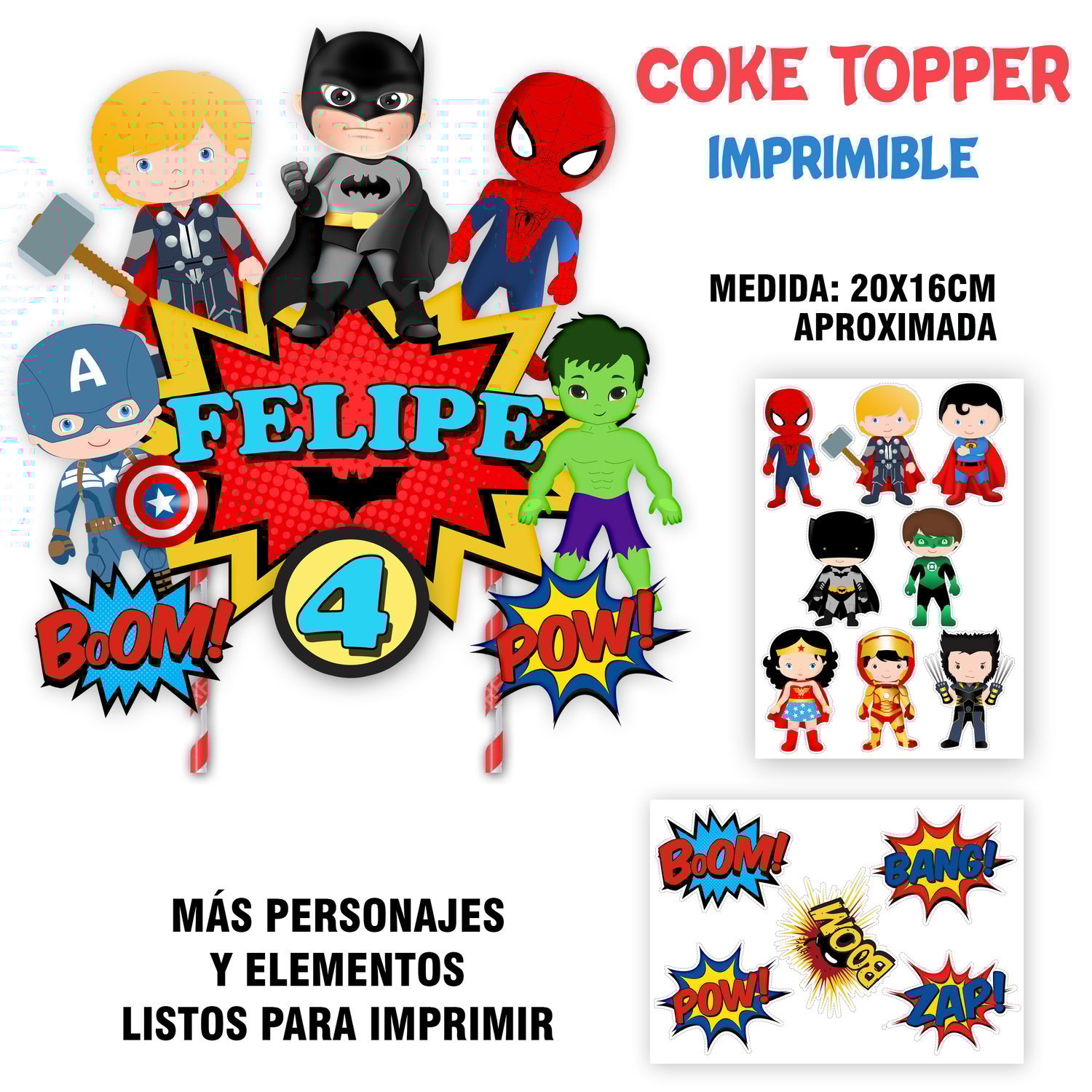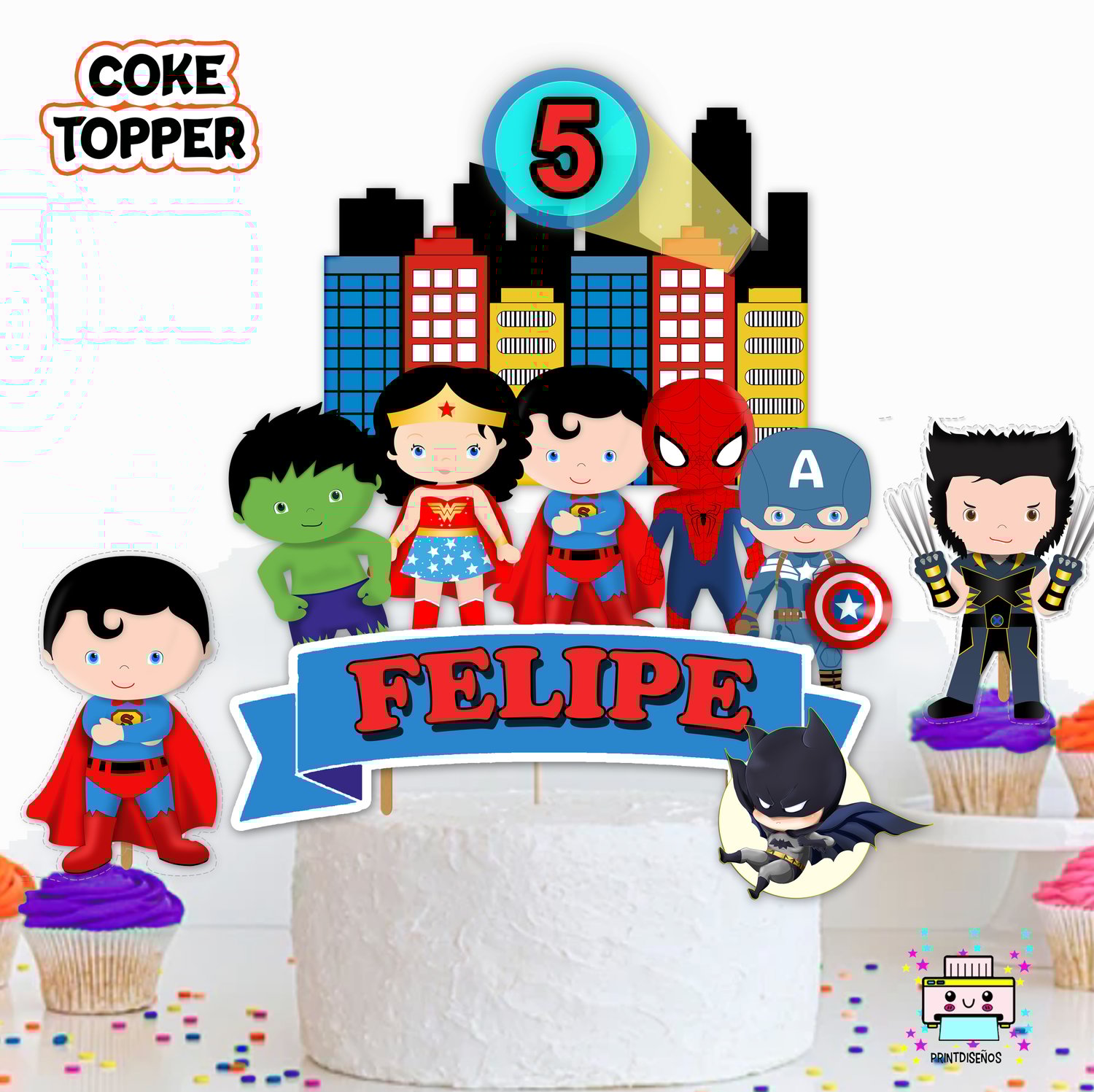 KIT IMPRIMIBLE CAKE TOPPER ADORNO TORTA MINI SUPER HEROES (MODELO A ELECCIÓN)