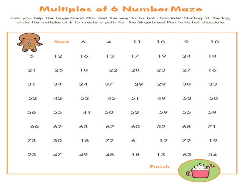 This handy Christmas themed Multiples of 6 maze is a great activity for children to consolidate their understanding of multiples of 6. Children have to help The Gingerbread Man find his hot chocolate. A great activity for early finishers, independent work or intervention groups.
