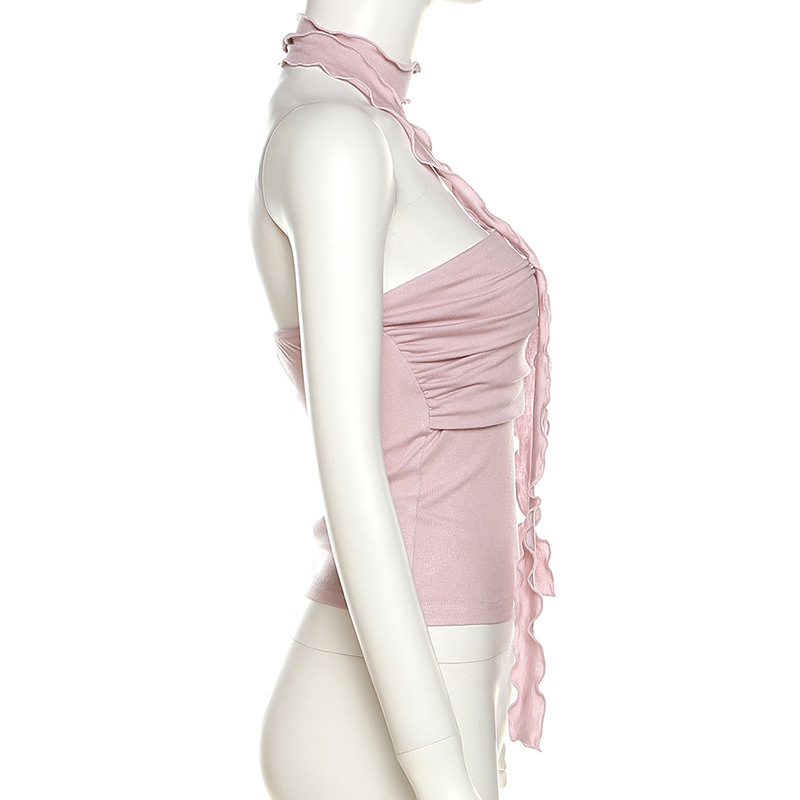 Designer coquette pink ruffled scarf off-shoulder bandeau