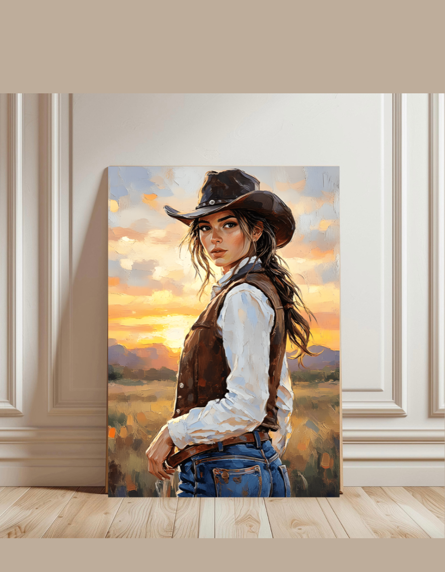 Print this cowgirl wall art at home, at your local print shop, or use an online service to create a stunning piece of western decor for your living room, bedroom, or office.