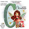 6 fairies plus 24 letters of the alphabet. Letters are on a watercolour background with gold embellishment. Fairies have either blonde or brunette hair and brown, blue or green eyes. Fairies are separate files so may be used on other end products, but may not be sold on in digital formats either on their own or as part of another design.
