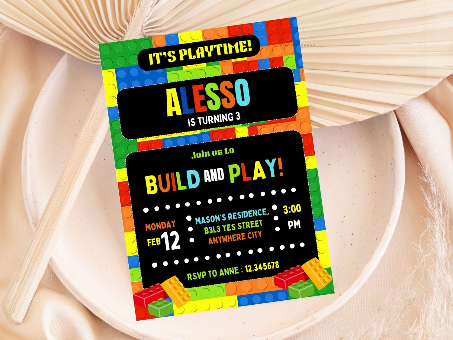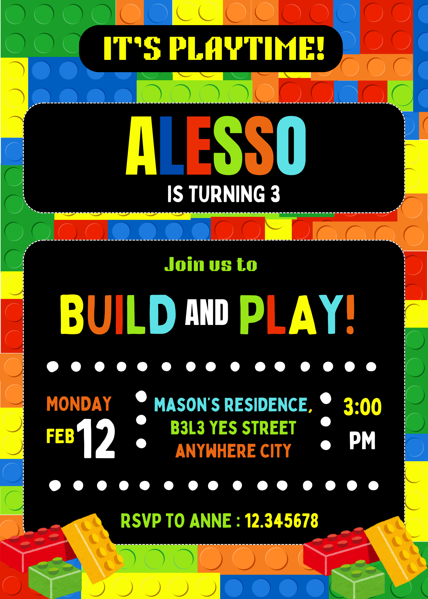 Editable Building Blocks Birthday Party Invitation Template with photo | Colorful Bricks Party Canva Template | Instant Download