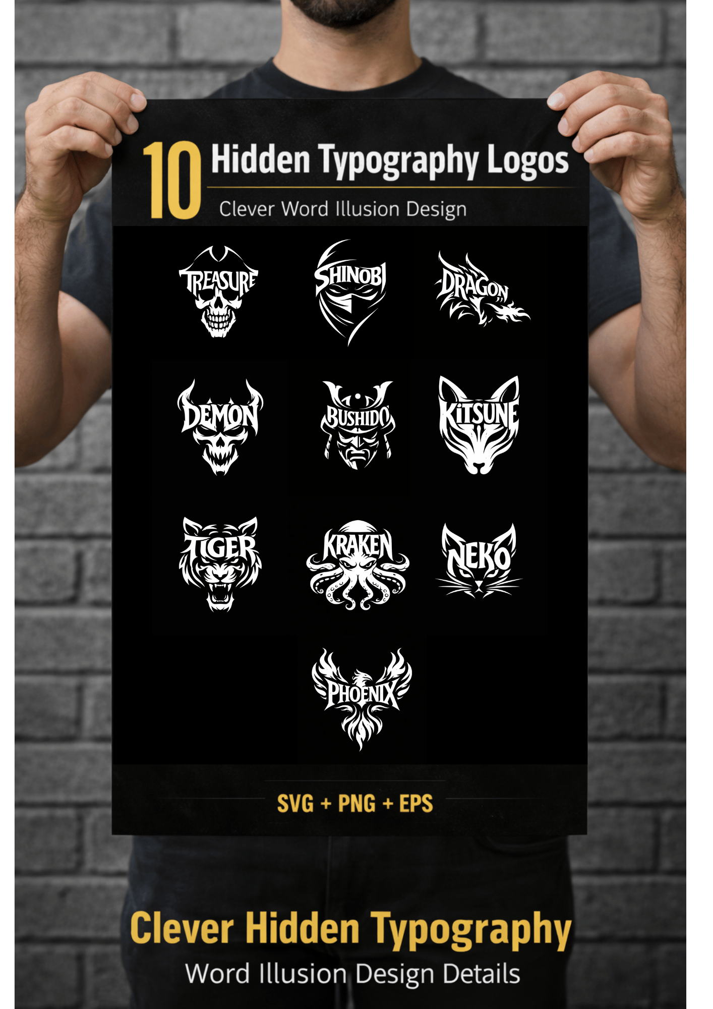 Hidden Typography Logo Pack – 10 Clever Word Illusion Designs
