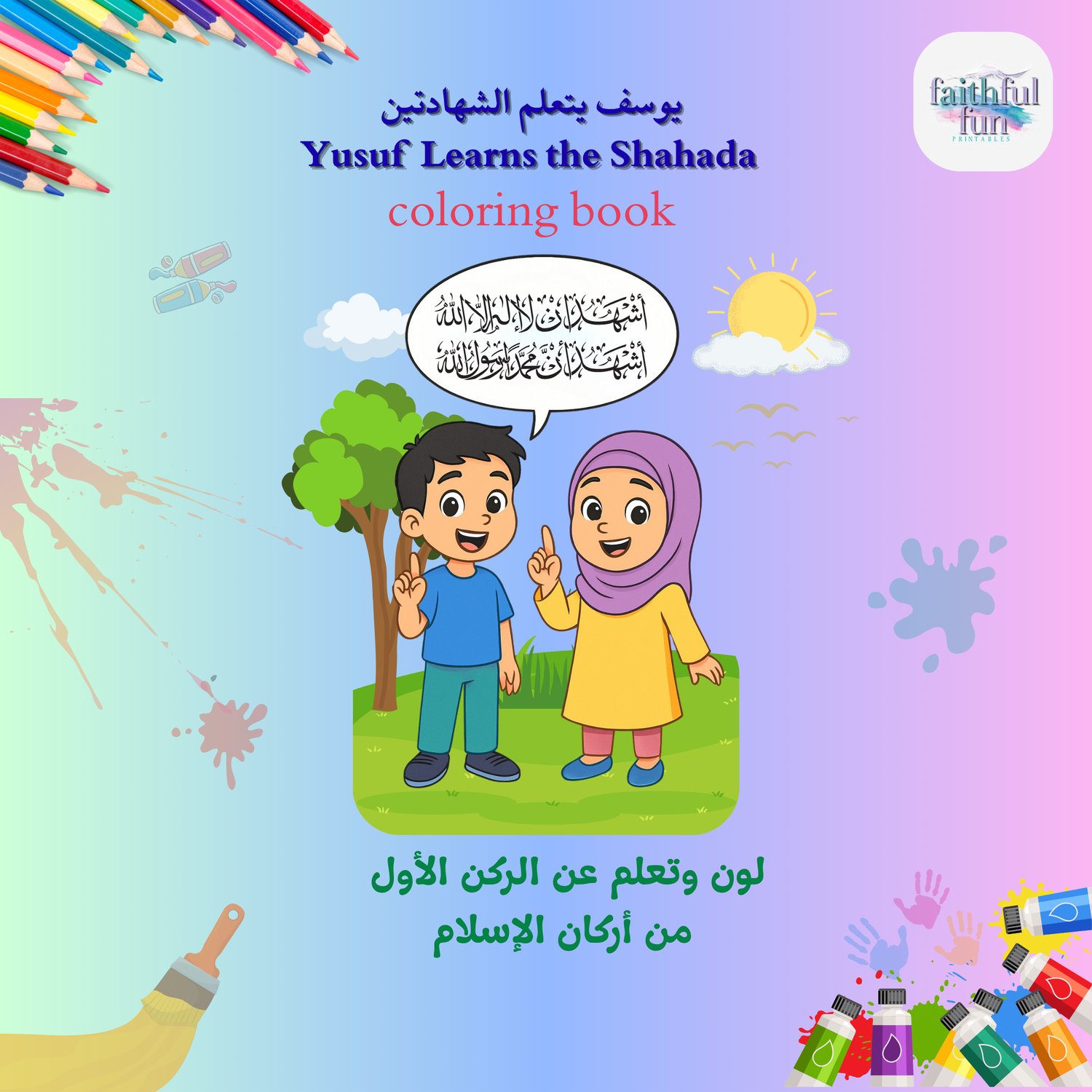 ابدأ رحلة طفلك مع أركان الإسلام الخمسة من خلال كتاب تلوين ممتع وتعليمي عن الشهادتين! مع يوسف وياسمين، سيتعلم الأطفال (من سن ٤ إلى ٧ سنوات) معنى قول: "لا إله إلا الله محمد رسول الله"، من خلال قصص مبسطة وصفحات تلوين محببة.