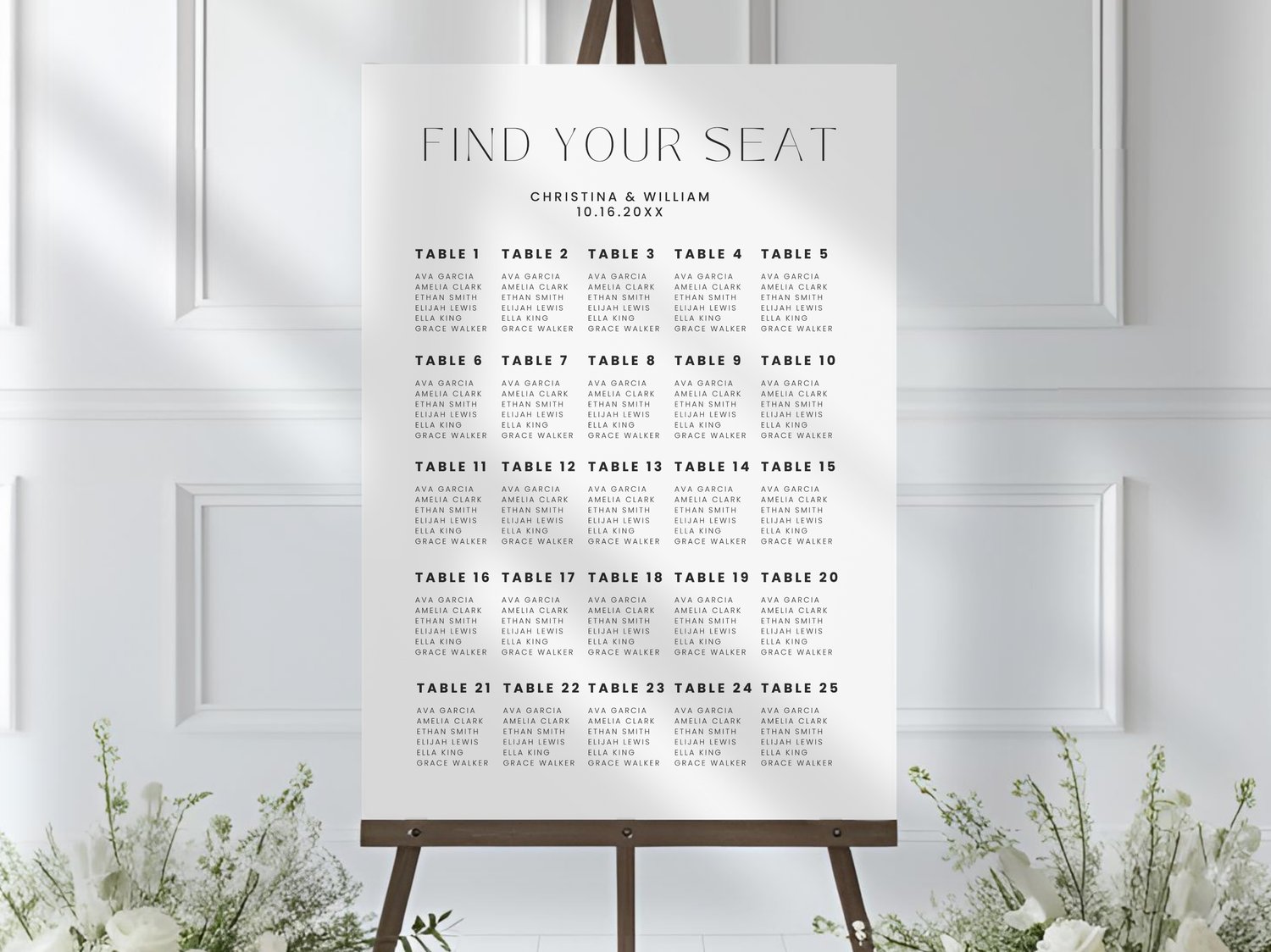 Minimalist Wedding Seating Plan Canva Template Editable Seating Chart Printable Guest Assignment Sign Reception Centerpiece Display 001