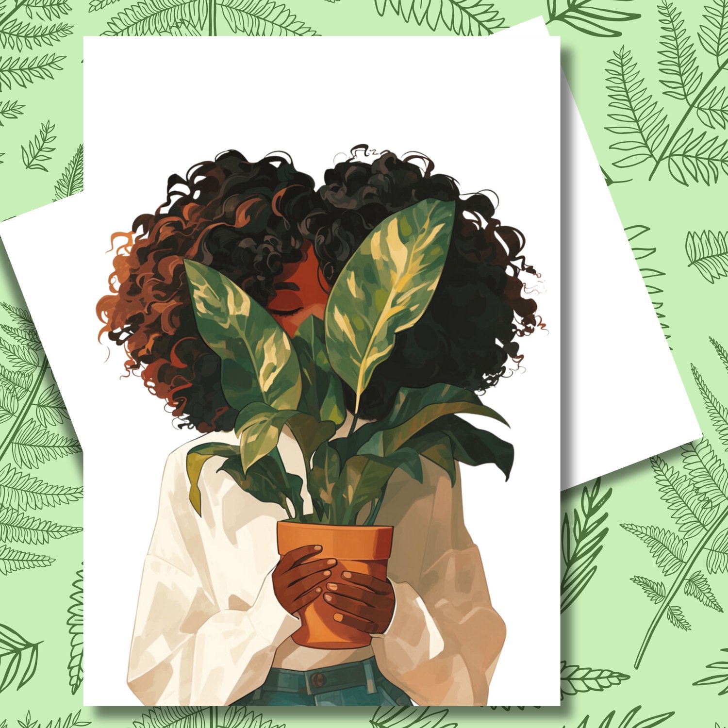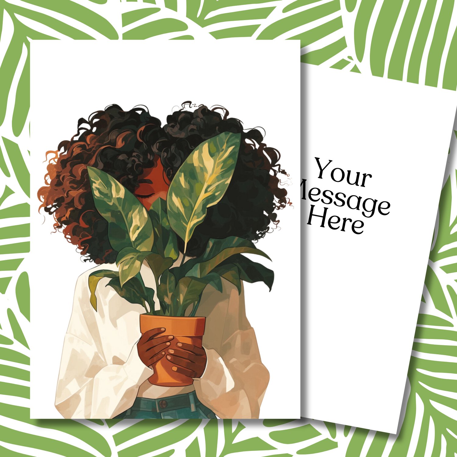 Plant Greeting Note Card | Blank Inside | Black Girl Greeting Card
