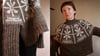 The sweater is knit top-down in the round. It’s a round yoke pullover with a deep yoke, almost like a swoncho, tapered sleeves and boxy body. In smaller sizes the yoke is as deep as the height of the colourwork section, in larger sizes you can choose to split for the body and sleeves as soon as colourwork is done. The neckline is shaped with short rows. All edges and the sleeves are worked in 2x2 ribbing.