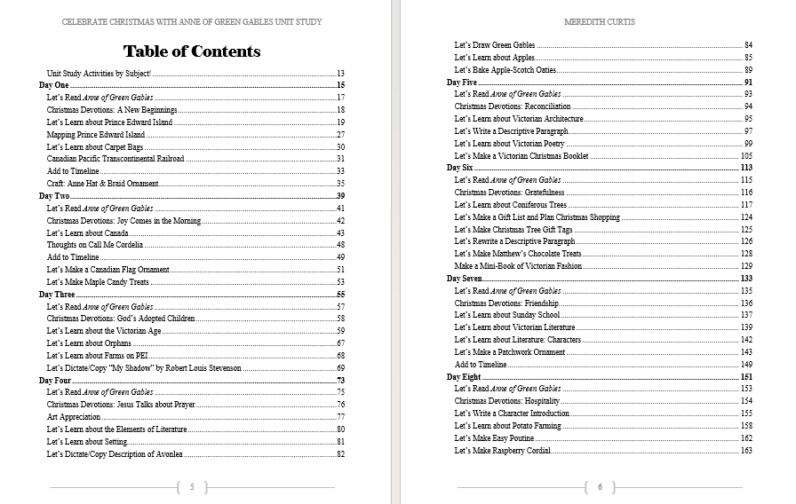 Celebrate Christmas with Anne of Green Gables Unit Study is a 4-week Christmas unit study where you delve into Prince Edward Island, farming, human anatomy, literature, writing, poetry, and Victorian times.