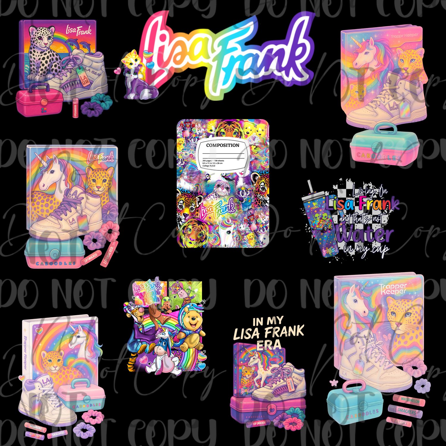 Step into your rainbow-core fantasy with this Lisa Frank–inspired digital art pack! This fan-made bundle includes 9 vivid PNG images channeling your favorite 90s staples—trapper keepers, caboodles, rollerblades, notebooks, and that signature neon animal magic. 🦄🐆🌈