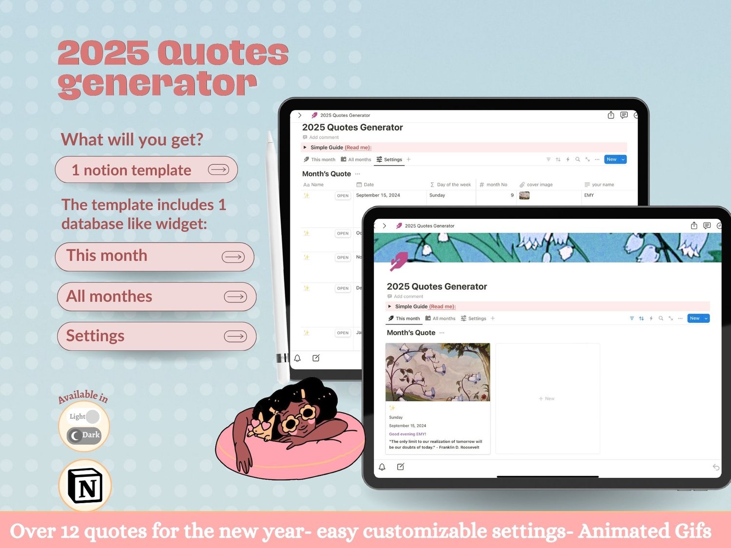 2025 Quotes Generator notion template