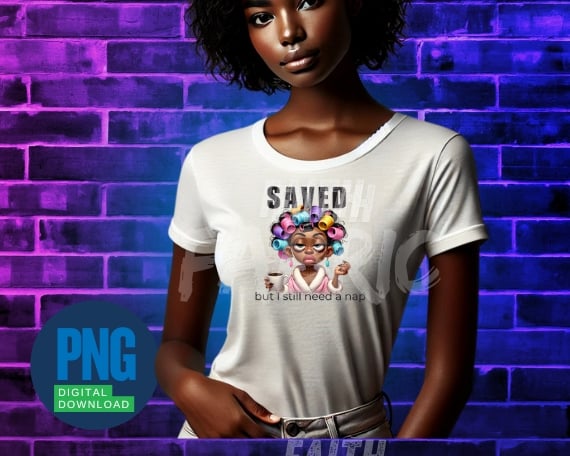 Bring humor and faith together with this "SAVED but I Still Need a Nap" PNG digital download!