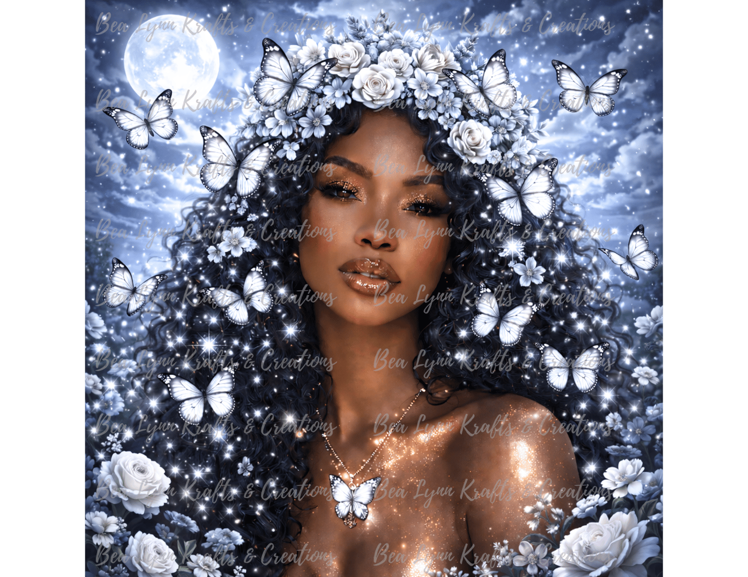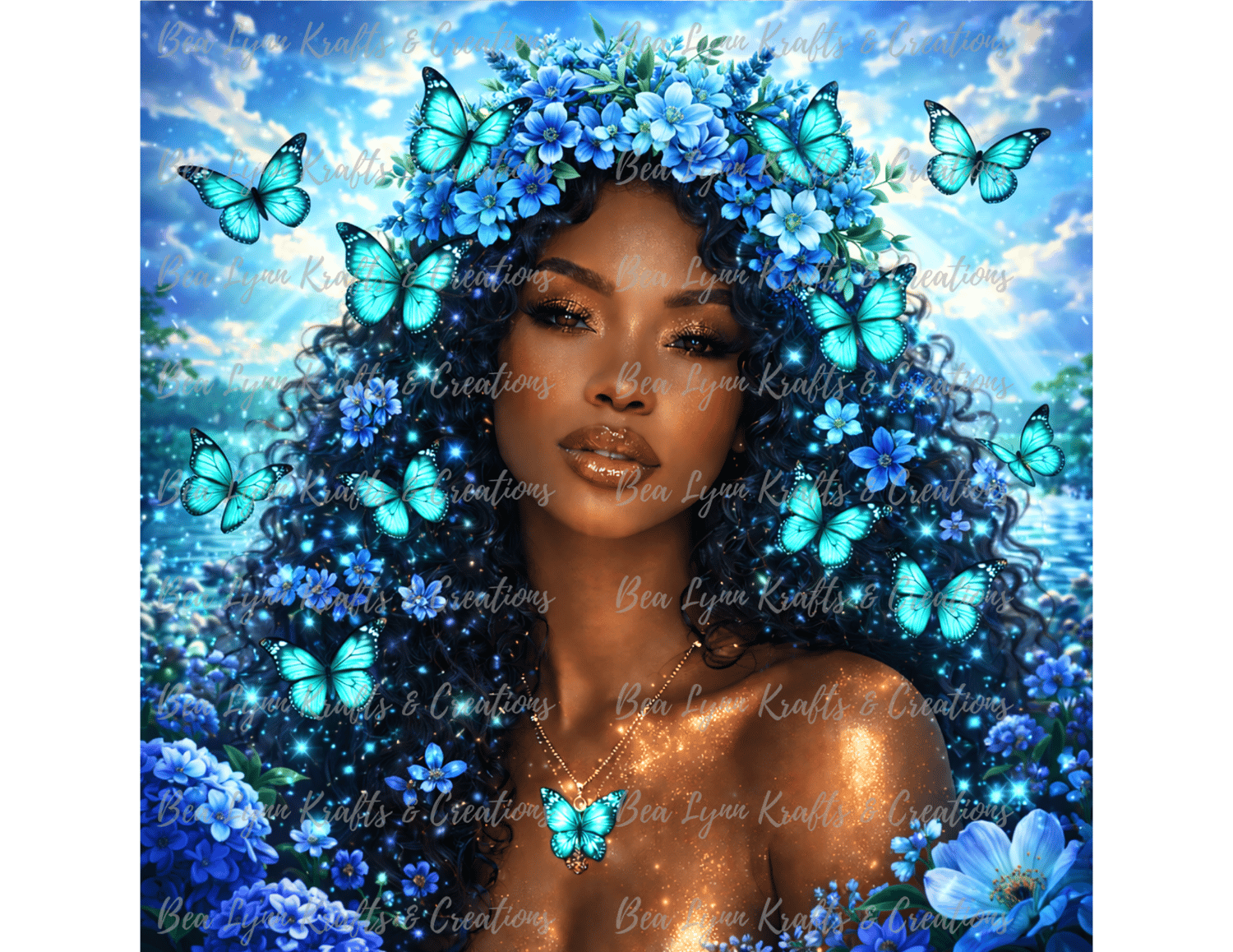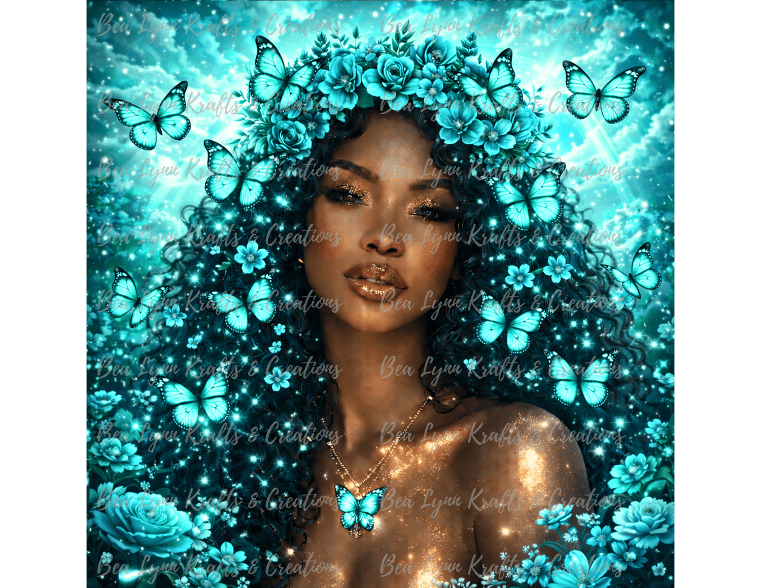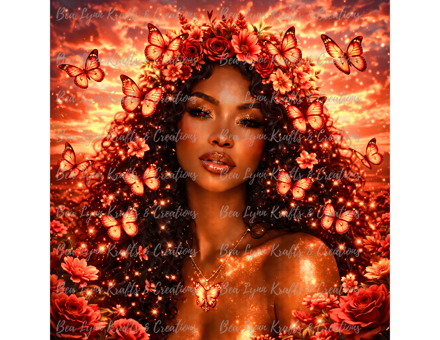 Step into a world of beauty, magic, and transformation with this Butterfly Goddess Fantasy Collection. This stunning bundle includes 10 ultra-detailed fantasy portraits of a radiant African American woman surrounded by glowing butterflies, magical flowers, and dreamy fantasy backgrounds in vibrant colors like gold, pink, emerald, teal, purple, sunset red, ocean blue, silver moonlight, and pastel rainbow.
