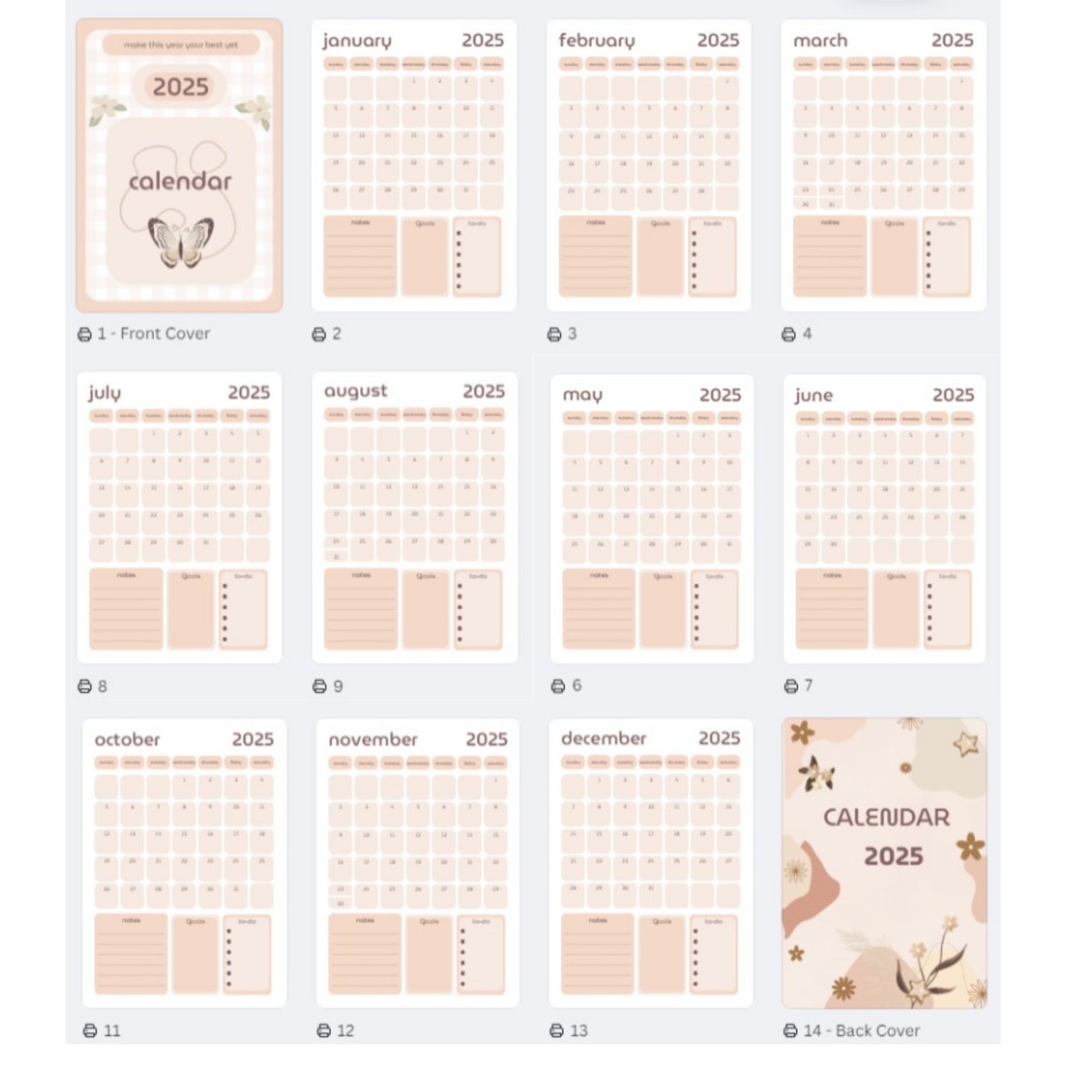 This White Peach Minimalist Monthly Planner Calendar will keep you organized with your busy monthly schedule. The Planner/ Calendar consists of a front cover, 12 pages for each month and a back cover. It can be used as PDF or on your note taking apps. Once downloaded, you’ll receive the product without the watermark. A preview of the PDF is provided in the link above.