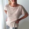 It is worked seamlessly from the top down, with a simple construction. The modern shape and the effortless look make this top a perfect summer basic.